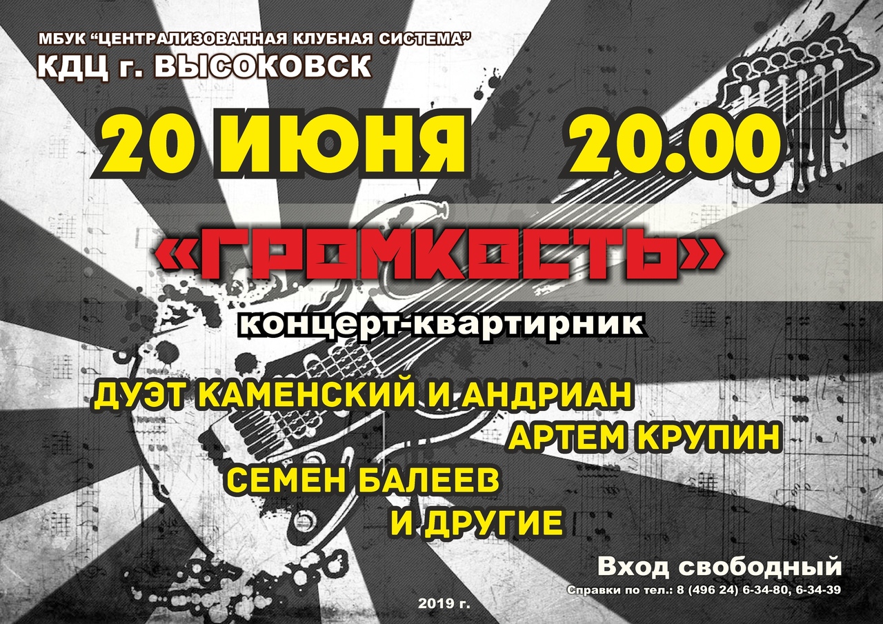 Культурно-досуговый центр г. Высоковск приглашает 20 июня 2019 года в 20:00 на концерт-квартирник «Громкость».