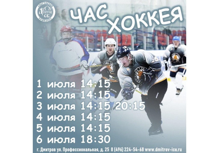 С 1 по 6 июля на льду Центра хоккея Спортивного комплекса «Дмитров» состоятся сеансы Часа хоккея.