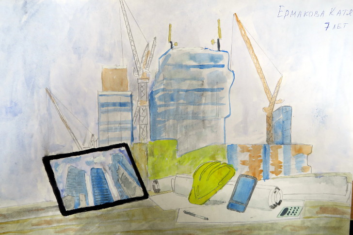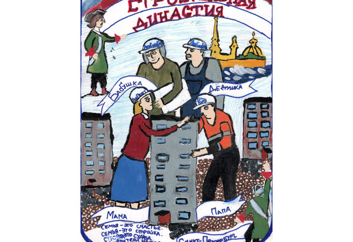 Юным художникам вручили почетные грамоты и подарки. Специальный приз Комитета по строительству Санкт-Петербурга достался Алексею Ляховичу за рисунок «Желтый самосвал», а специальный приз Союза строительных объединений и организаций и Группы «Эталон» – в этом году отдали Юлиане Болденковой, которая изобразила на своем рисунке всю семью – строительную династию.