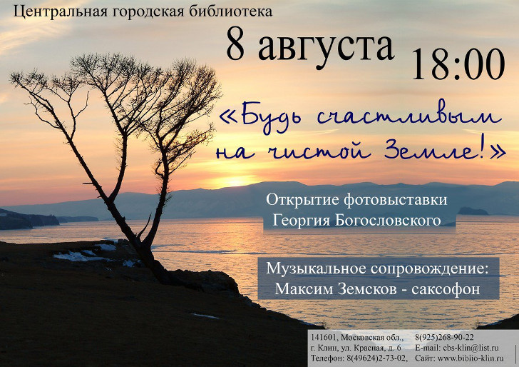 Центральная городская библиотека приглашает всех желающих на открытие выставки Георгия Богословского «Будь счастливым на чистой Земле!».