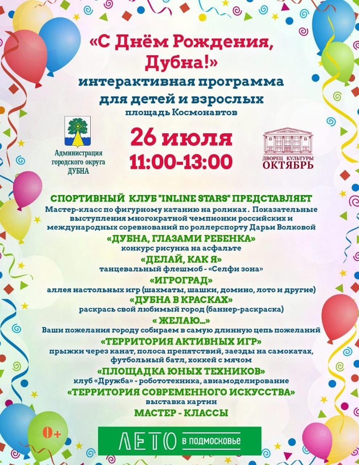 - 13.45 – Поздравление главы городского округа Дубна Максима Данилова