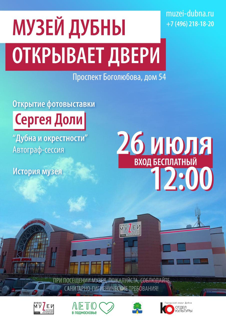 - 12.00 – Открытие Музея Дубны. Фото-выставка Сергея Доли.