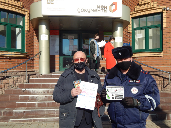 Сотрудники Госавтоинспекции напомнили посетителям и сотрудникам МФЦ и РЭО ОГИБДД ОМВД России городского округа Клин о необходимости использования детских удерживающих устройств во время перевозки детей в салонах транспортных средств, а также о важности применения обязательных атрибутов для пешеходов — световозвращающих элементов.