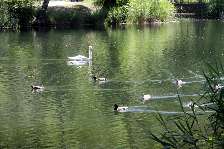 Пруд с ажурными мостиками, грациозными лебедями и тихими аллейками с удобными тропинками. Пение птиц умиляет и завораживает. Трава буквально пьянит ароматом, а пчелки трудятся, собирая нектар. Стрекозы и шмели также удивляют своей акробатичной гибкостью.