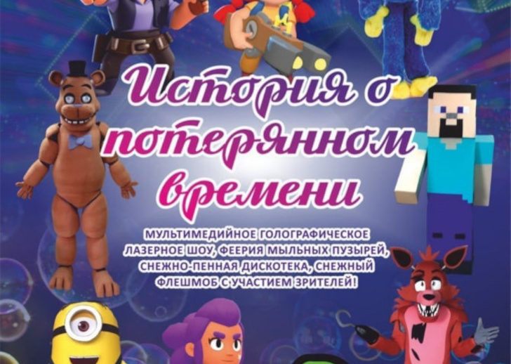 Мультимедийное голографическое лазерное шоу, феерия мыльных пузырей, снежно-пенная дискотека, снежный флешмоб с участием зрителей.
