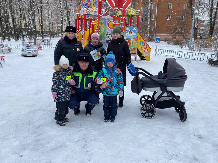 Полицейские встретились с родителями, гуляющими с детьми, и напомнили им о безопасности на придомовой территории, правилах перевозки детей в транспортных средствах, разъяснили, какие опасности могут подстерегать детей на дороге, как избежать «дорожных ловушек» и вручили памятки с основными рекомендациями безопасного поведения детей во время прогулок и светоотражающие сувениры.