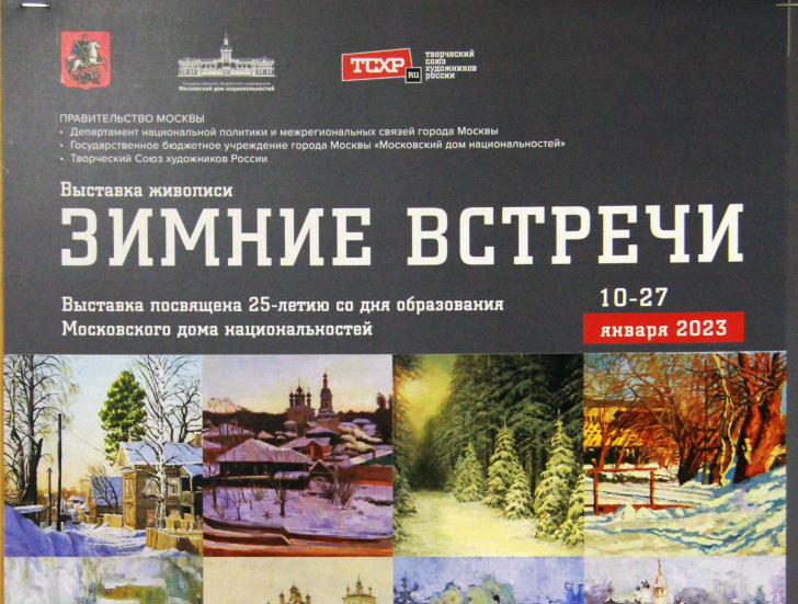 Выставка «Зимние встречи» — это первая секционная выставка в 2023 году, а также именно она открывает юбилейный для Московского дома национальностей год. Выставка посвящена не только зиме и зимним праздникам, но и тёплым встречам с теми, кто дорог и любим.