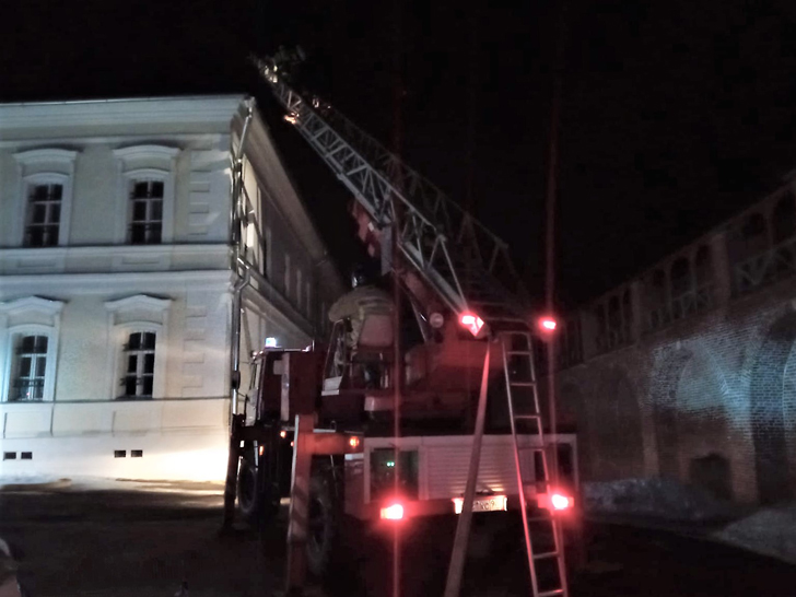 В среду, 15 марта, работники 319-й пожарно-спасательной части Московской областной противопожарно-спасательной службы провели ночное пожарно-тактическое занятие в здании музея-заповедника «Зарайский кремль», расположенного в городе Зарайске.