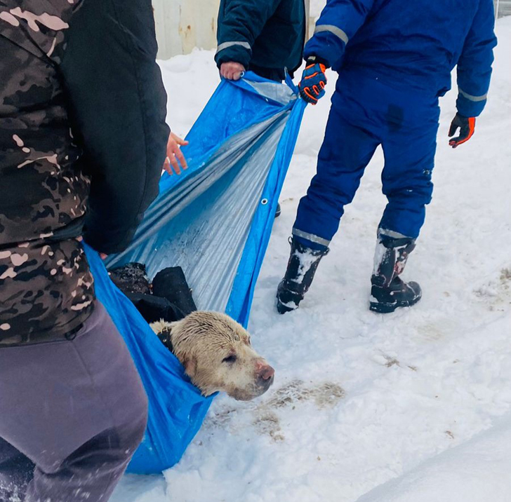 «Прибыв на место вызова, работники противопожарно-спасательной службы оценили обстановку и откачали жидкость с помощью мотопомпы и дренажного насоса, который предоставили жители. Один из специалистов спустился на дно ямы и обвязал обессилевшего алабая спасательной верёвкой. Затем пятеро мужчин подняли пса наверх и транспортировали до дома охранника», — заключил Владислав Пятак.