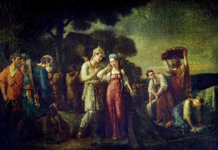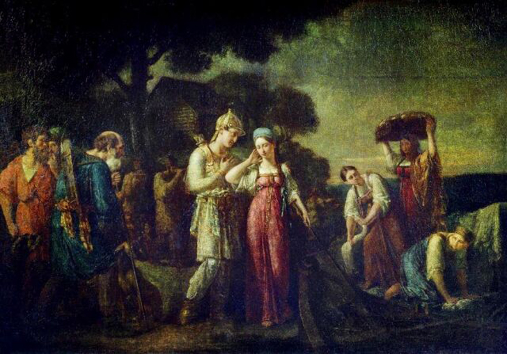 На фото: картина Василия Сазонова «Первая встреча князя Игоря с Ольгой» (1824, Третьяковская галерея, Москва, www.tretyakovgallery.ru)