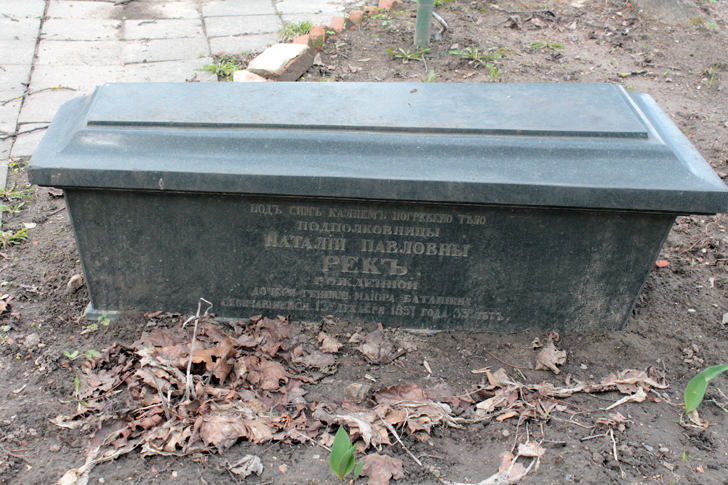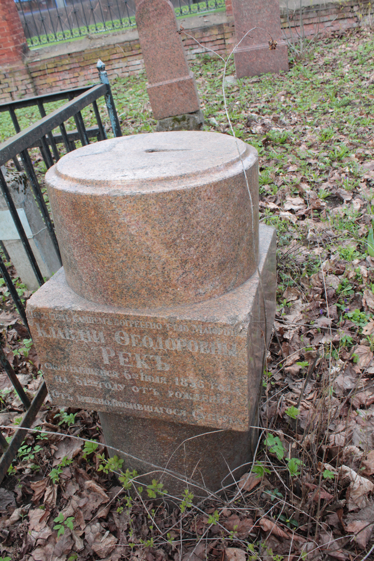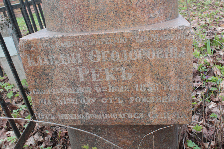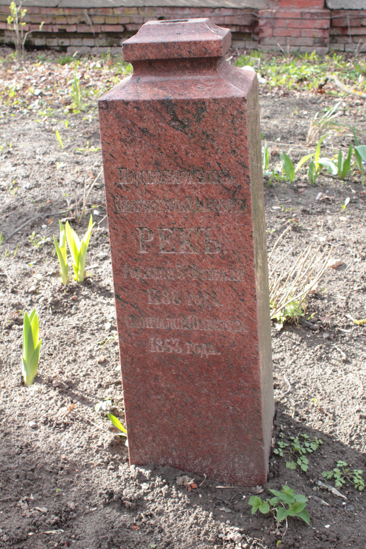 Константин Иванович Рек умер в 1863 году и был похоронен с северной стороны храма в честь иконы Божией Матери «Всех скорбящих Радость». Здесь же похоронена его супруга Клавдия Фёдоровна (1805 – 1856) и сын Владимир Константинович Рек (1820-1860) и невестка Наталья Павловна Рек (1824-1857).