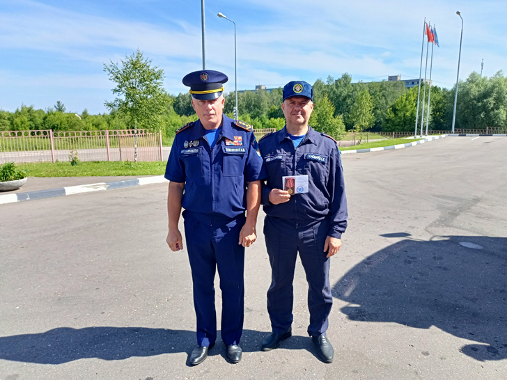 Работники противопожарно-спасательной службы Илья Харламов и Борис Пономарев получили заслуженные медали, на лицевой стороне которой изображён пожарный со спасенным ребёнком на руках на фоне горящего здания», — пояснила Инна Петряева.