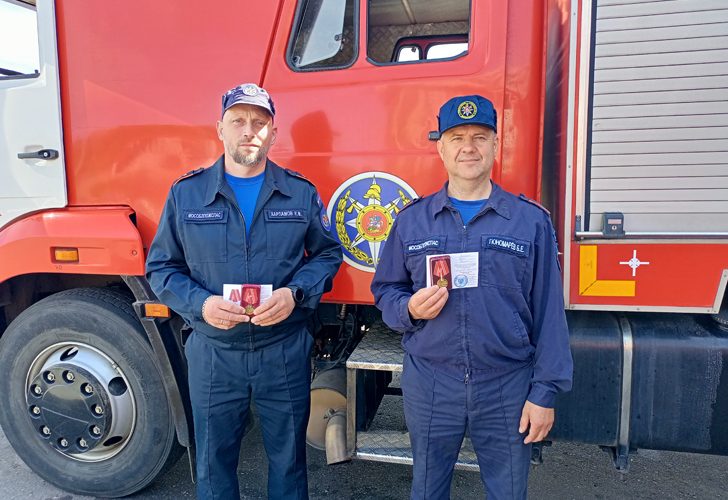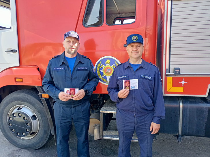 Работники противопожарно-спасательной службы Илья Харламов и Борис Пономарев получили заслуженные медали, на лицевой стороне которой изображён пожарный со спасенным ребёнком на руках на фоне горящего здания», — пояснила Инна Петряева.