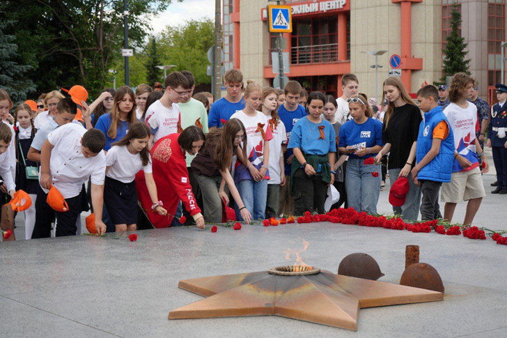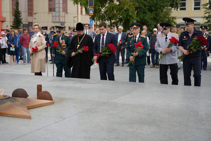 В завершение собравшиеся возложили цветы к мемориальному комплексу «Вечный огонь» и почтили светлую память погибших минутой молчания.