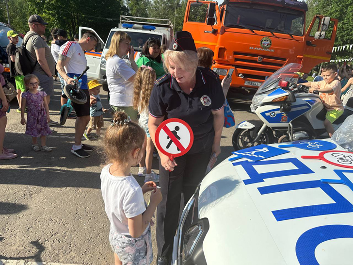 Ребятам продемонстрировали патрульный автомобиль и мотоцикл ДПС, который вызвал настоящий восторг, не только у детей, но и у взрослых. Познакомили с работой специальной световой и звуковой сигнализацией, которой оснащены все патрульные транспортные средства Госавтоинспекции . Взрослые и дети делали яркие селфи на память.