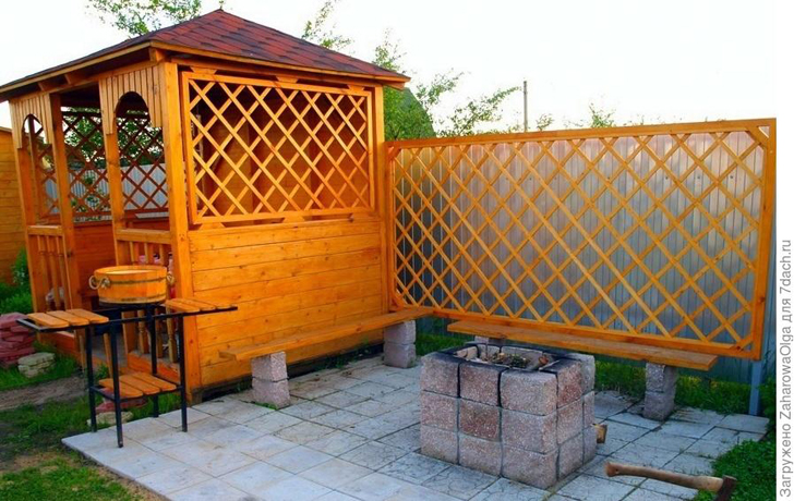 Уже давно мне хотелось поговорить на тему размера дачного участка. Так вот, у меня он очень маленький, всего 6 соток. И пусть простят меня владельцы больших участков, но мне кажется, что все-таки сложнее обустроить именно маленький. Очень сложно разместить на нем все, что хочется. Для меня очень важно было выделить какую-то зону для отдыха, где можно посидеть, попить чайку, приготовить что-нибудь вкусное. Вот такая у нас появилась для этого беседка, лавочки, мангал, мойка…