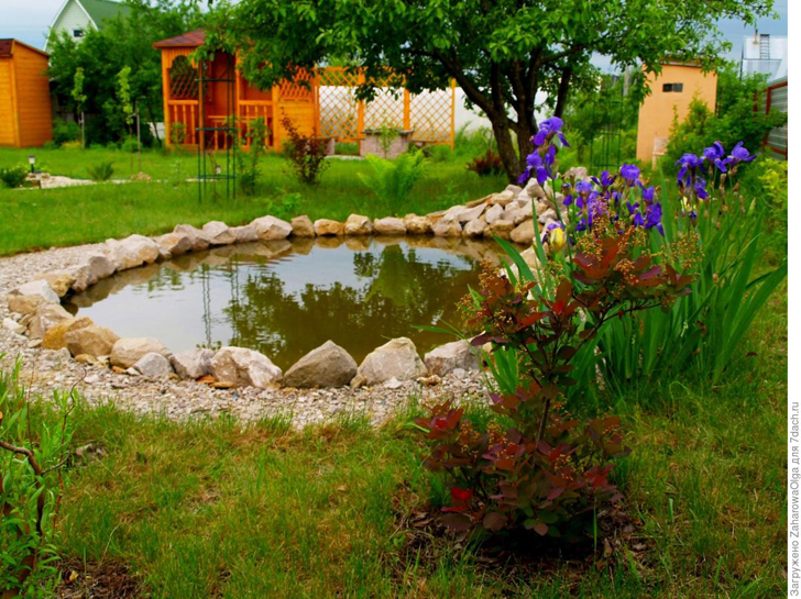 Всегда мечтала создать на даче хотя бы маленький пруд. А мечты, как известно, имеют свойство сбываться. Вот и моя сбылась! Он небольшой и, по-моему, отлично вписался!