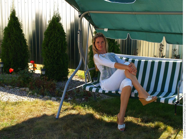 Ещё для меня было важно, чтобы было место, где можно не только посидеть, но и полежать, поэтому приобрели качели. Они небольшие, но отдохнуть на них можно вполне, хотя теперь я купила бы побольше.