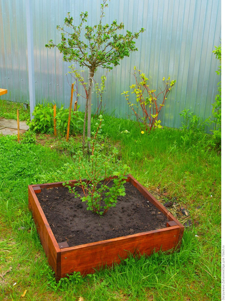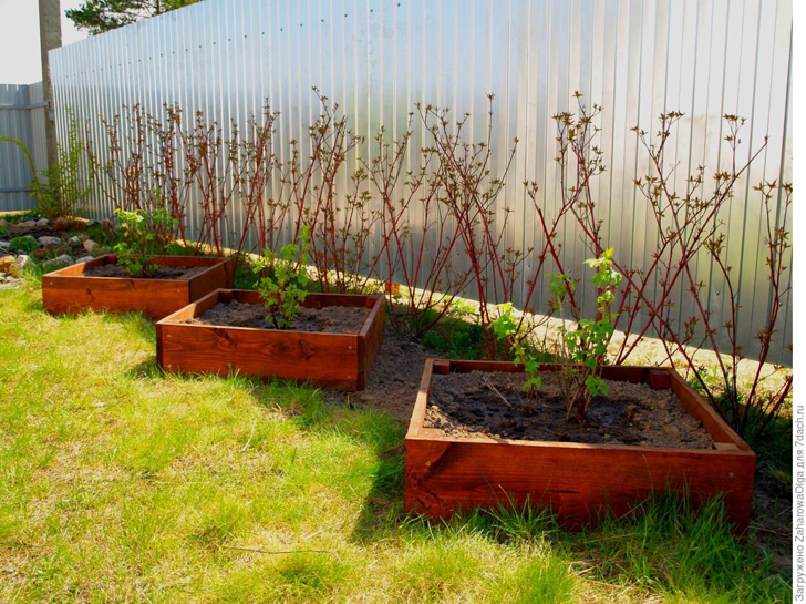 Очень мне, конечно, хочется на участке выращивать ягоды. Уже посадила 3 куста чёрной смородины вот в такие грядки-коробочки.