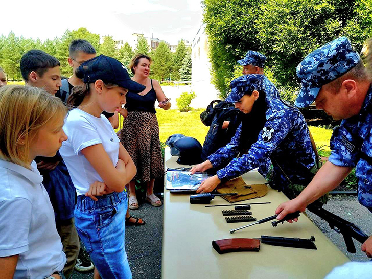 Стражи порядка посетили ребят, отдыхающих в летнем лагере, расположенном на базе лицея №4 и рассказали детям об истории создания Росгвардии.