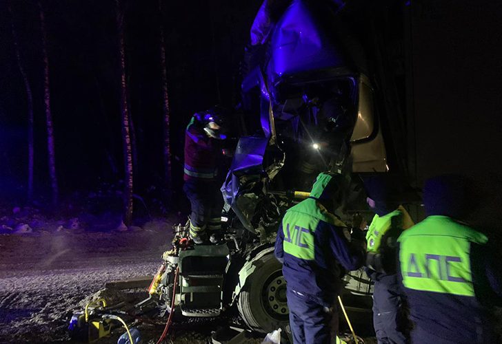 «Прибыв на место вызова, работники противопожарно-спасательной службы осмотрели место дорожно-транспортного происшествия и оценили ситуацию. Спасатели обеспечили медикам доступ к пострадавшему для оказания необходимой первой помощи, после чего приступили к деблокировке. Специалисты с помощью гидравлического аварийно-спасательного инструмента аккуратно разобрали конструкцию кабины большегруза и осторожно освободили водителя. Работники подразделения передали мужчину 1996 года рождения медикам, после чего с многочисленными травмами тот был экстренно госпитализирован. Второй участник ДТП не пострадал и в медицинской помощи не нуждался», — пояснил Михаил Дыкман.