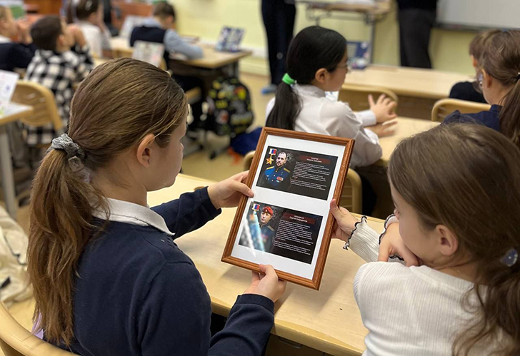 В Одинцово росгвардейцы совместно с председателем региональной ветеранской организации войск правопорядка рассказали четвероклассникам лингвистической гимназии о Героях Российской Федерации. Ребята узнали о мужестве Евгения Кукарина и офицера Росгвардии Максима Концова.