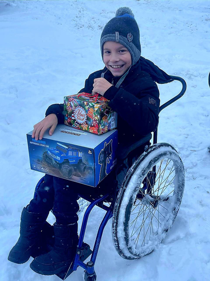 Спецназовцы подарили Стасу не только незабываемые эмоции, но и сладкие подарки и игрушечный внедорожником на радиоуправлении. А также за стремление и веру в собственные силы ребенку с особенностями здоровья торжественно вручили специальный значок отряда.