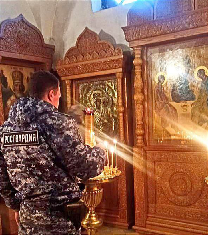 Сотрудники Росгвардии поставили свечи и, обращаясь к святому Николаю с просьбами о благополучии, помолились о здравии сослуживцев, которые выполняют воинский и служебный долг вдали от дома.