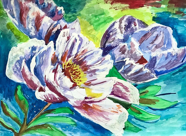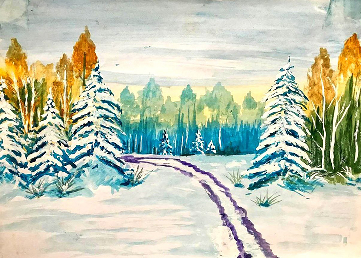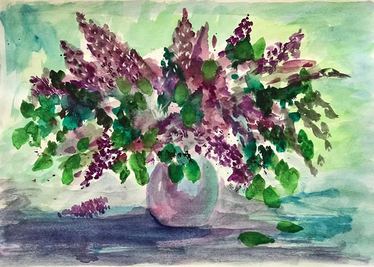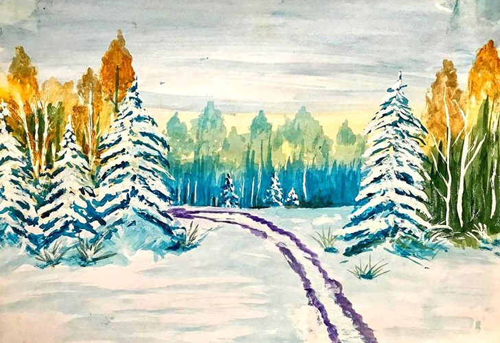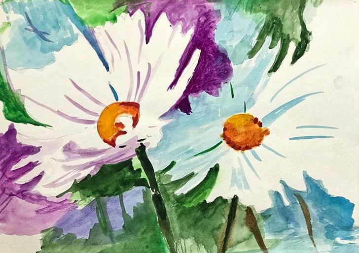В арсенале Екатерины – карандаши, акварель, гуашь и нейлоновые кисти. Ее любимые мотивы – это завораживающие пейзажи родной местности и яркие цветы, которые она с энтузиазмом рисует, вдохновляясь их богатым разнообразием в мамином саду. Новые идеи приходят и во время прогулок по лесным тропинкам и городским улицам.