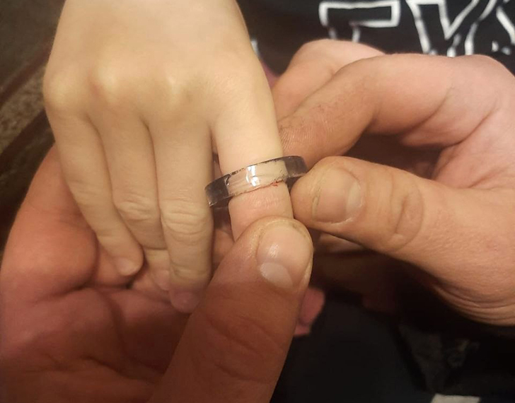 Старший смены Алексей Афромеев рассказал, что в единую службу экстренных вызовов «Система-112» позвонила обеспокоенная мама и сообщила, что её 8-летний сын во время игры надел на палец кольцо из эпоксидной смолы. Однако снять изделие своими силами они не смогли, поэтому обратились за помощью к специалистам.