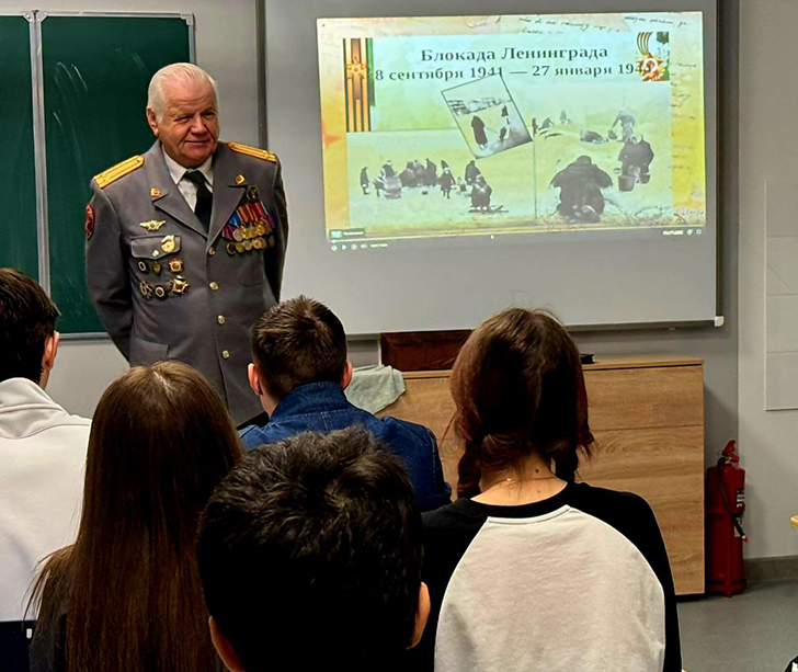 Владимир Петрович рассказал ребятам о героической обороне города, а также о подвигах солдат и местных жителей в те тягостные дни. Особое внимание на встрече было уделено теме хлеба – символу жизни в блокадном городе. Ветеран службы рассказал о бесценной «Дороге жизни» через Ладожское озеро, которая стала единственной нитью, связывающей осажденный Ленинград со страной.