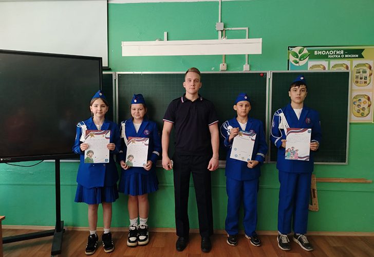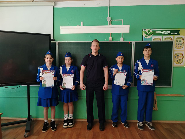 Ребята поздравили военнослужащих, которые несут службу в рядах Вооруженных Сил России, сотрудников полиции и МЧС, инспекторов Госавтоинспекции.