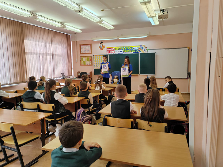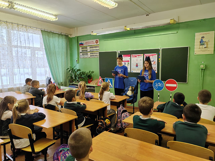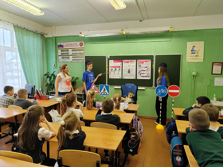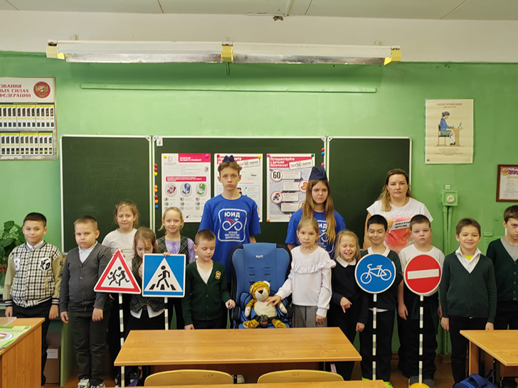 В рамках социального раунда «Маленький пассажир — большая ответственность» участники отряда ЮИД «Дорожный дозор» провели информативную беседу с младшими школьниками, направленную на закрепление знаний о правилах дорожного движения (ПДД).