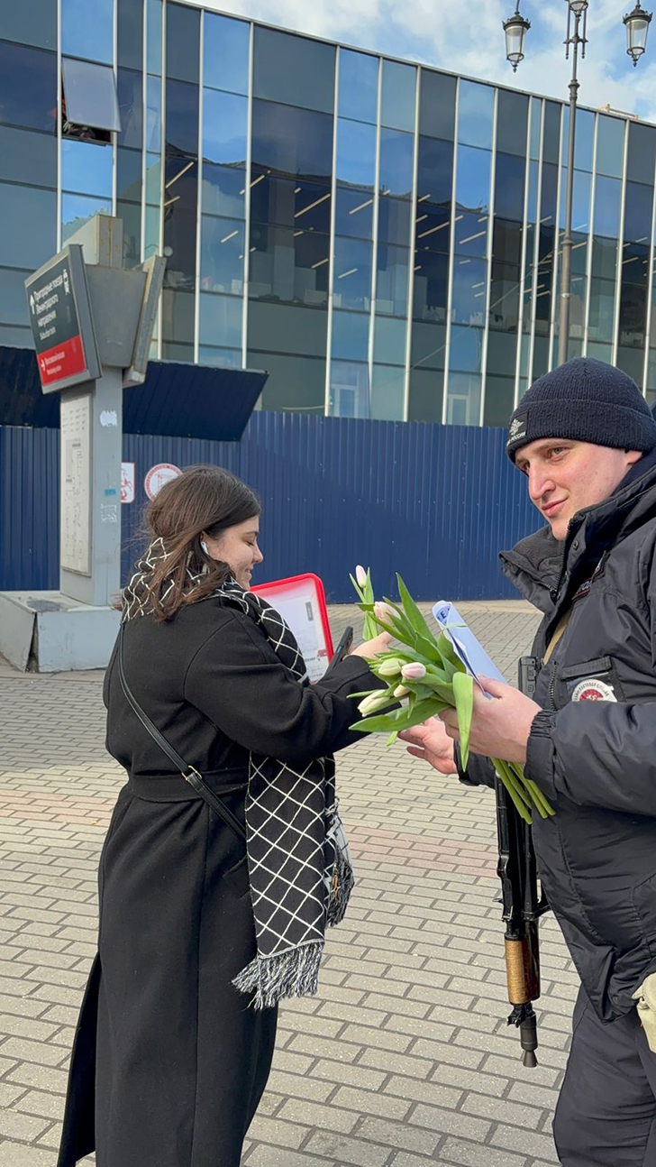 В таком необычном амплуа видеть полицейских пассажирам было неожиданно и приятно. Красивые цветы радовали глаза случайных прохожих и создавали весеннее настроение всем женщинам.