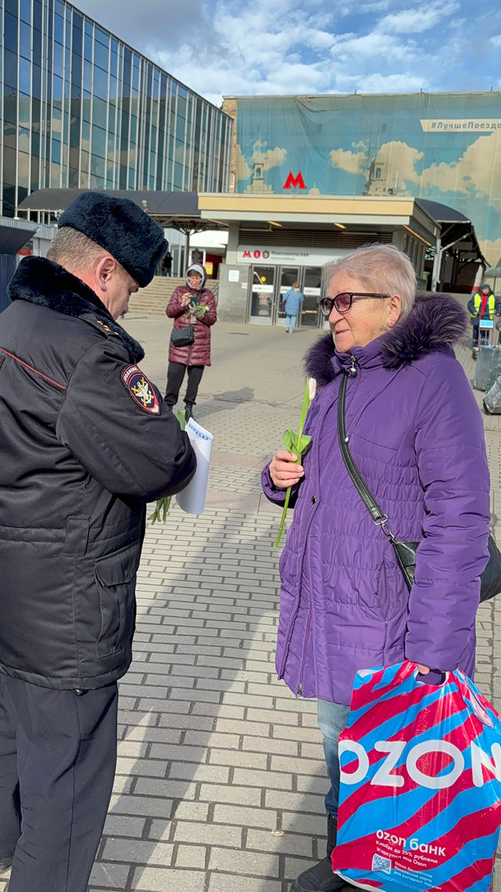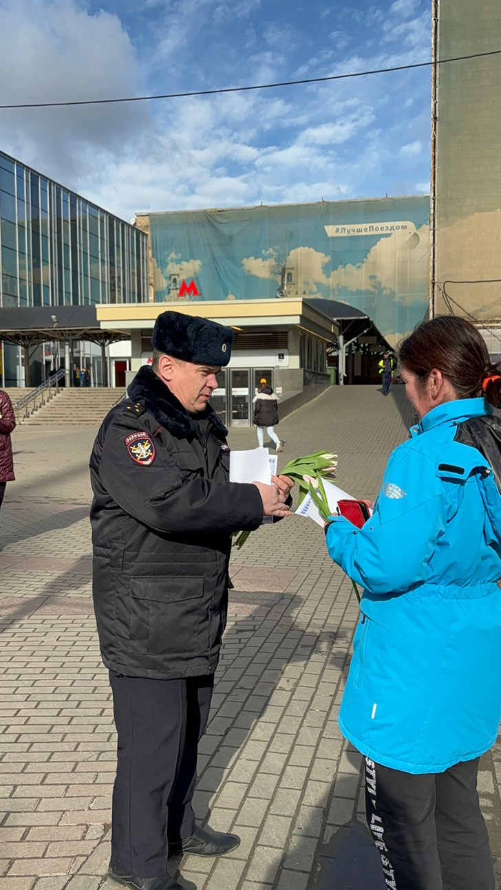 Сотрудники Линейного отдела МВД России на станции Москва-Ленинградская по сложившийся традиции присоединились к акции «8 Марта в каждый дом».