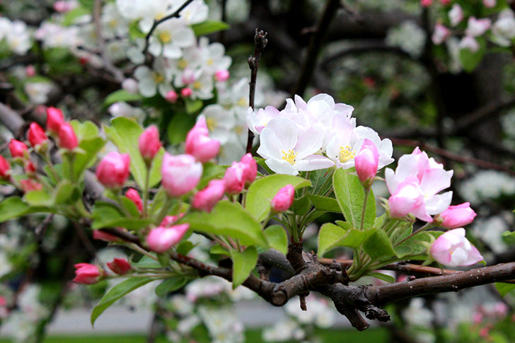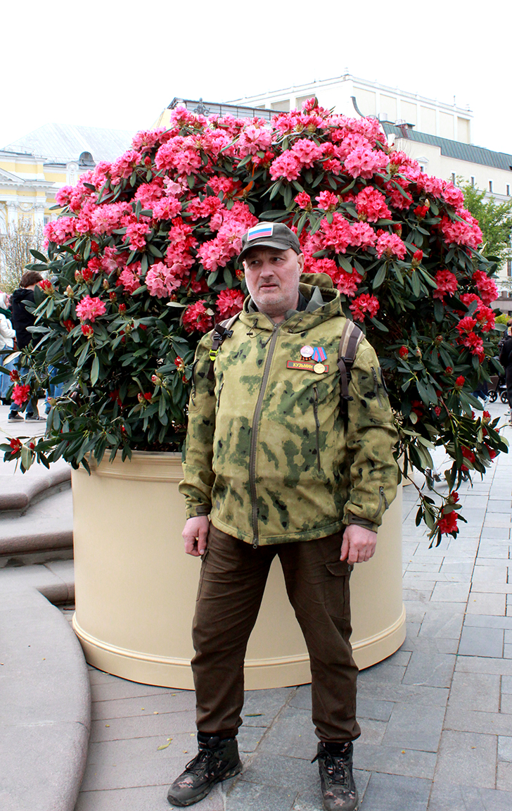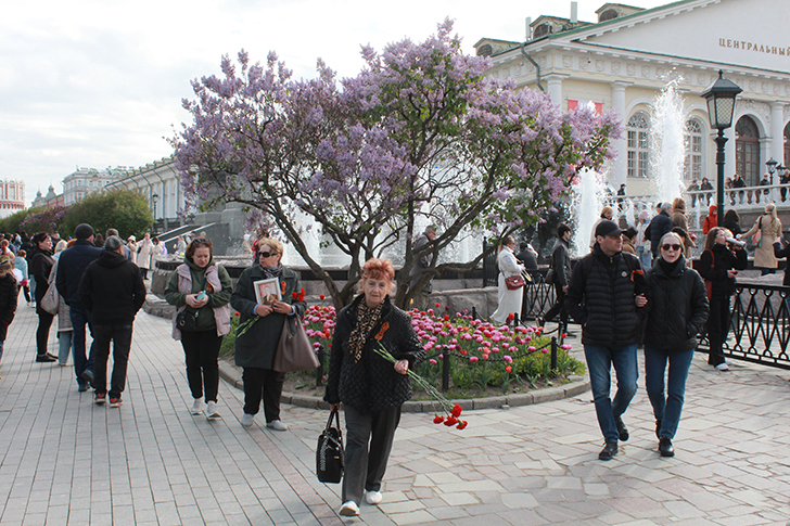 Яблони в цвету, аромат сирени и море улыбок Утро 9 Мая в Москве началось с теплого ветерка, несущего запах цветущей сирени. Белые, лиловые, розовые кисти будто специально расцвели к празднику, украшая улицы и скверы. А рядом — нежные яблони, осыпающие тротуары лепестками, словно живое конфетти. Но главное украшение города в этот день — люди.