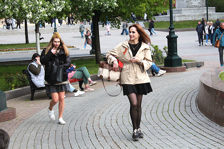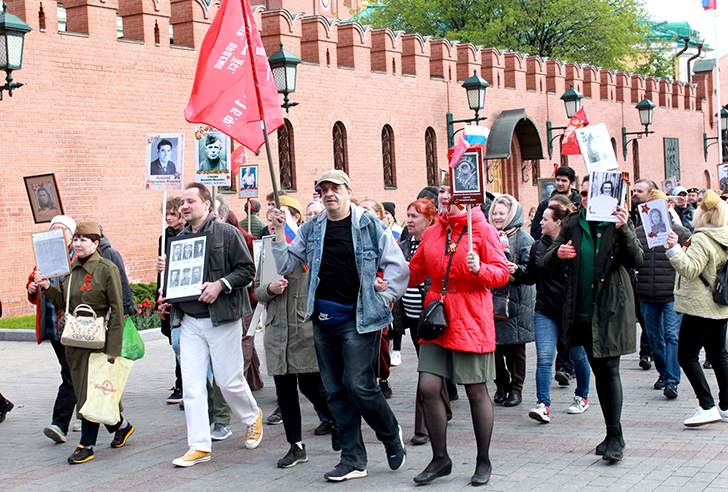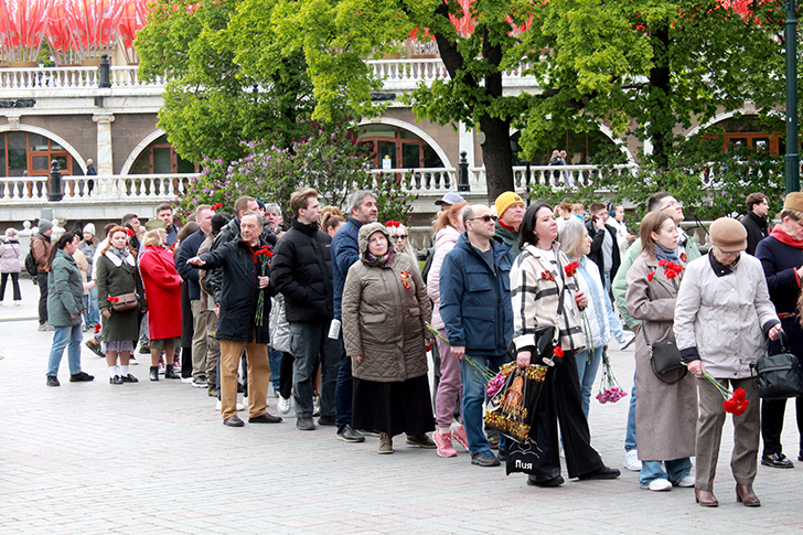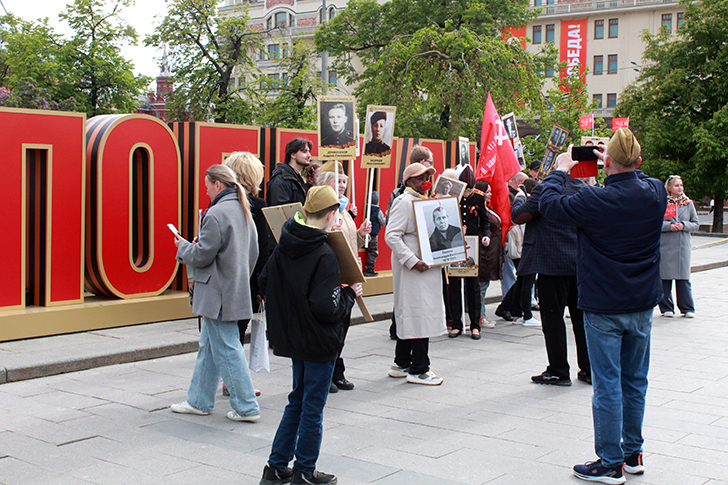 С самого утра улицы наполнились жизнерадостной толпой: семьи с детьми, пары, друзья — все в приподнятом настроении, с георгиевскими ленточками на груди и цветами в руках. Встреча с живой историей была Поклонной горе и у Большого театра собрались ветераны и Дети войны. Их с каждым годом все меньше, но их глаза по-прежнему горят — они помнят, то тяжелое время. К ним подходят дети, дарят гвоздики, благодарят. И как же трогательно видеть, как седовласый дедушка в орденах улыбается малышу, который робко жмет ему руку.