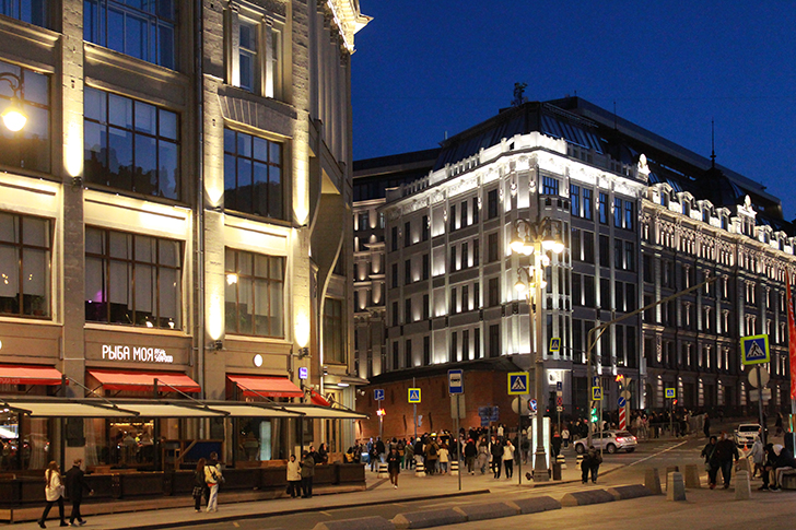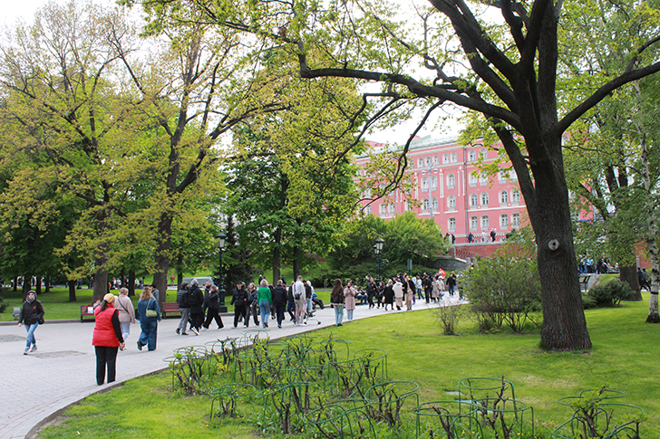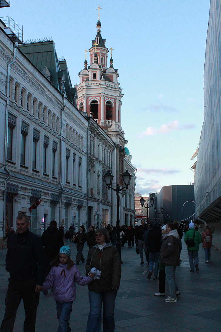 После шумных улиц мы зашли в тихие переулки Замоскворечья и Арбата. Множество мемориальных досок на домах -это напоминало о том, что здесь жили великие полководцы, партийные работники и знаменитые учёные. Но здесь праздник ощущался иначе: не громко, но очень душевно. В кафе сидели пары, на лавочках отдыхали пожилые москвичи, обсуждая былые времена.