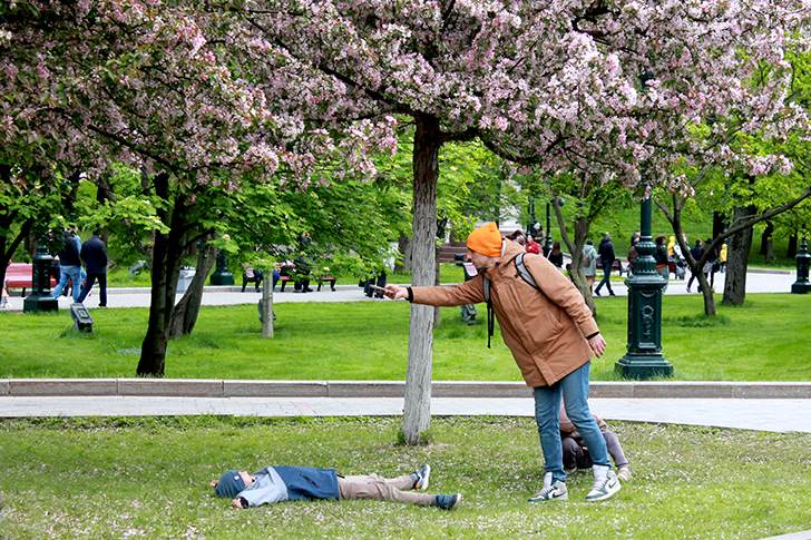А вот несколько лиц для фотографий. Смеющиеся дети снимающие автопортрет (селфи), люди с портретами близких (бессмертный полк), девушки в коротких юбках позирующие на фоне цветущих яблонь. Каждый кадр — отдельная история.