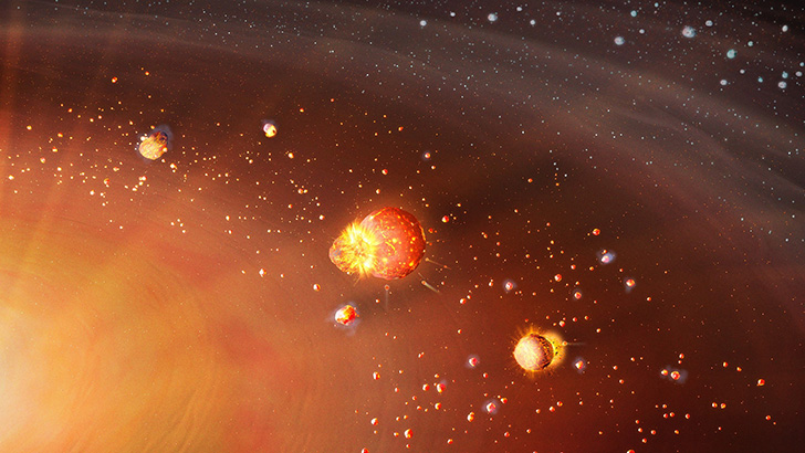 На главном фото: формирование протопланет во внутренней и внешней областях Солнечной системы в представлении художника. Credit: Mark Garlick