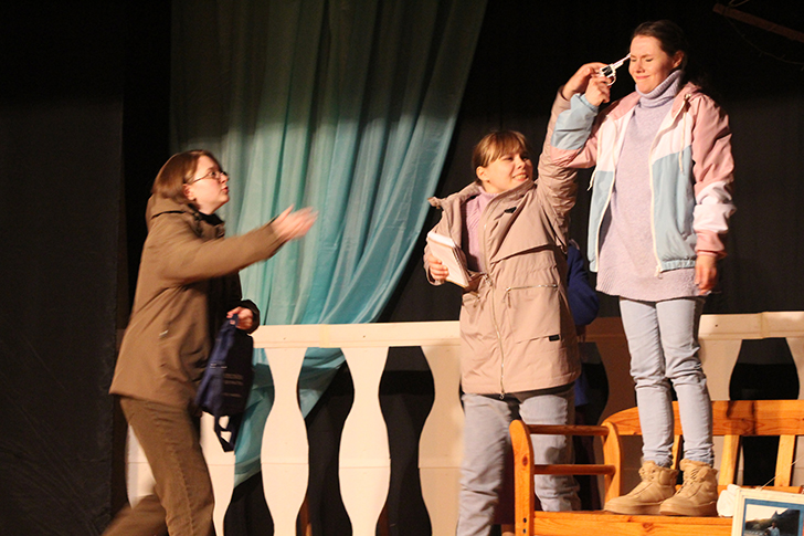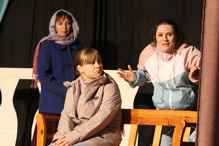 Алёна студентка (Кира Метелева)— её правда и упрямство вызывают смех, но в тишине между репликами слышится тоска. Люська (Кира Соколова) — её молчание говорит больше, чем слова. Зоя актриса (Юля Кузнецова) – лирическая влюбленность, но за этим надежда на счастливое будущее.