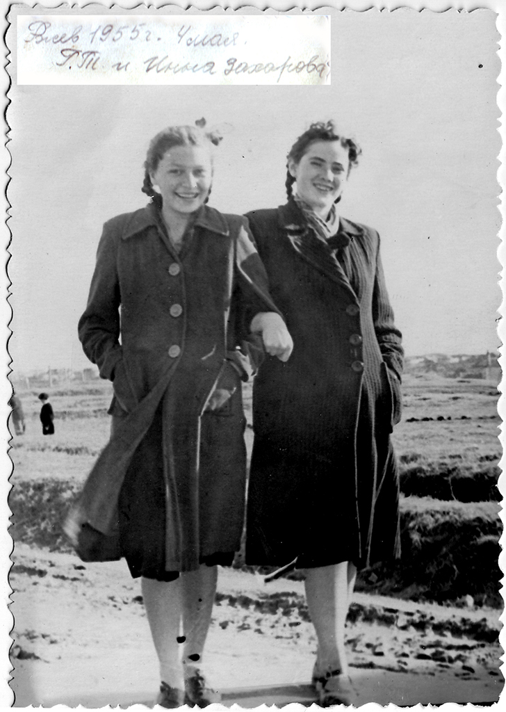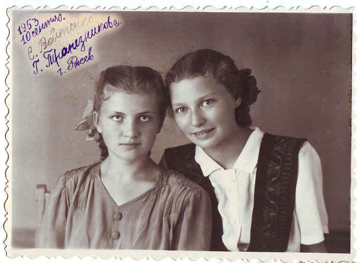 Здесь моя мама Швец Мария Трофимовна на фотографии слева, сидит между двух девушек, а справа, вторая её подруга, соседка Нина Заверуха (Дроздова) жива до сих пор, живёт у железной дороги, пос. 31-ого Октября, мы там тоже раньше жили.