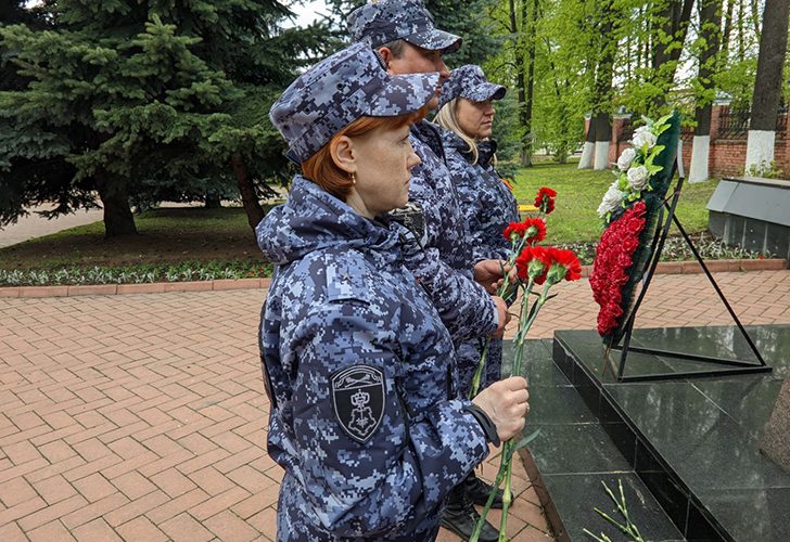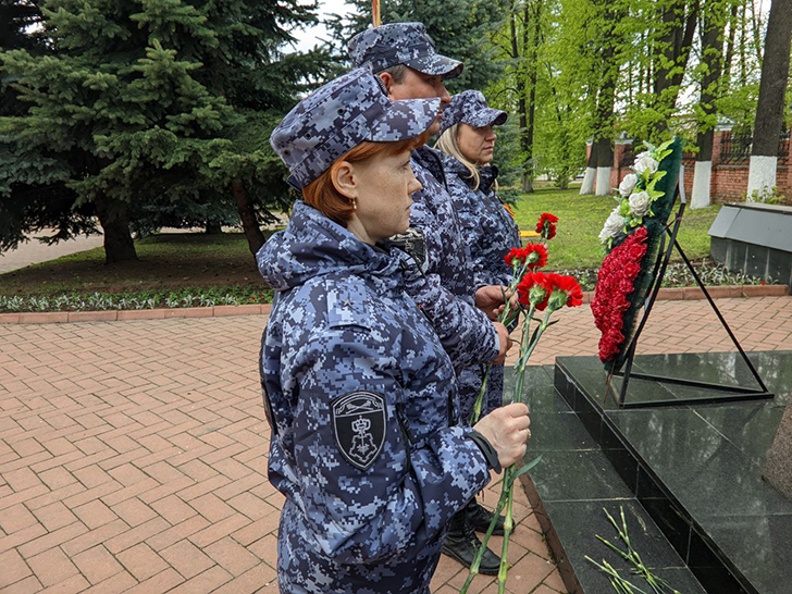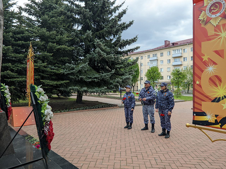 Сотрудники Клинского ОВО Росгвардии возложили алые гвоздики к мемориалу Воинской Славы и минутой молчания отдали дань уважения подвигу советских солдат и офицеров.