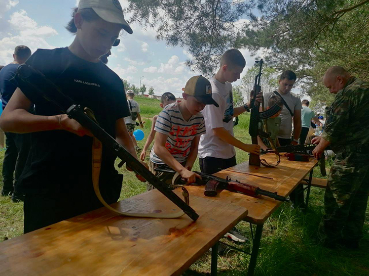 На выставке ребята смогли посмотреть виды учебного оружия, попробовать свои силы в сборке и разборке автомата Калашникова.