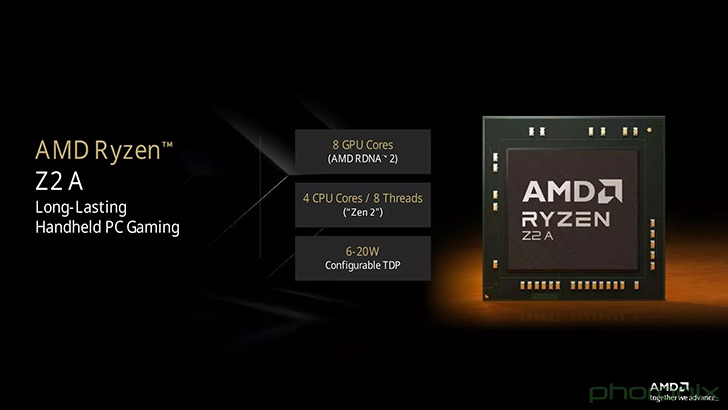 Ryzen Z2 A ориентирован на устройства начального уровня. В основе – устаревшая архитектура Zen 2. Процессор включает 4 ядра и 8 потоков, а также 8-ядерный GPU на архитектуре RDNA 2. TDP находится в диапазоне от 6 до 20 Вт – модель предназначена для консолей, где в приоритете длительное время автономной работы.