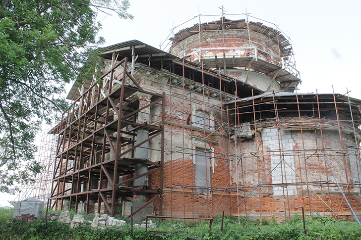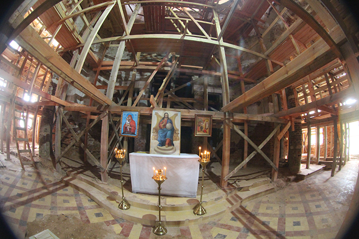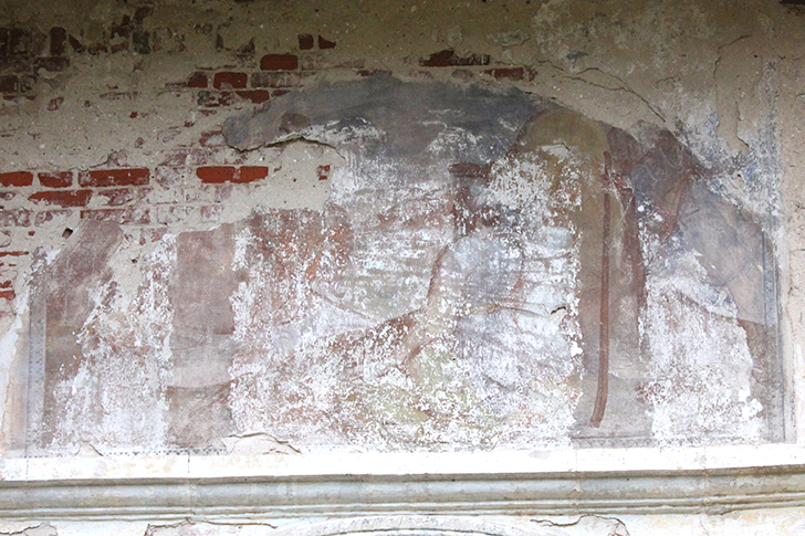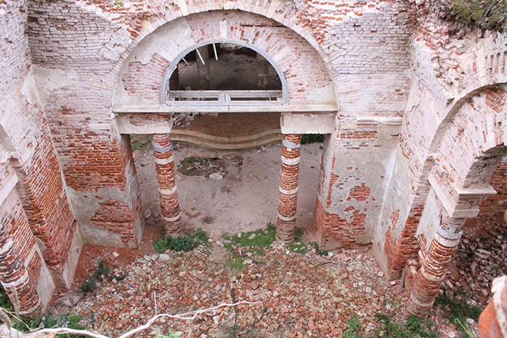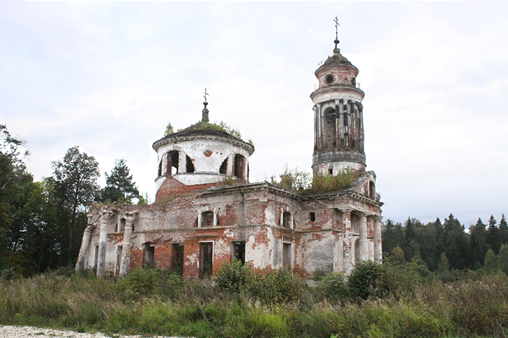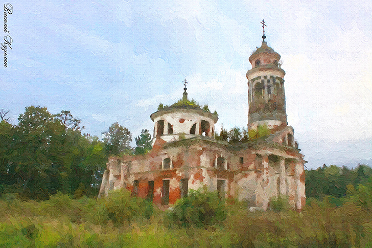 Она была одна в этой природной пучине и недавла себя сломить ни дождям ни ветрам. Хотя вид рваных парусов (кирпича и штукатурки), пустые глазницы окон навевали грустный мотив, но гордый вид храма не сдавался.