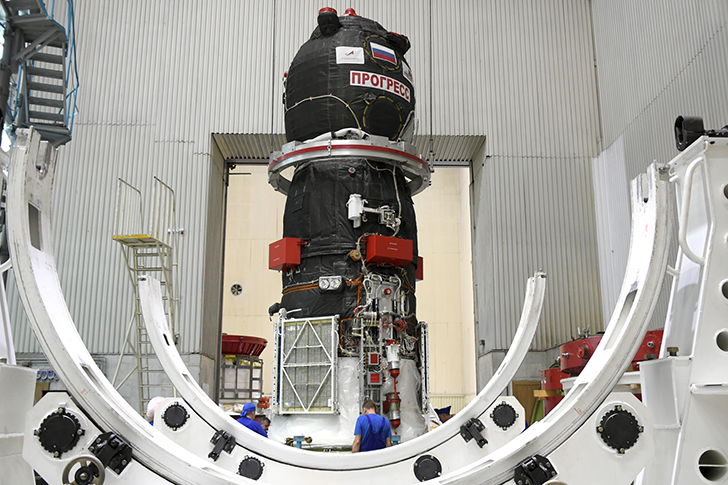 19 июня в ракетно-космической корпорации «Энергия» им. С.П. Королева завершился этап заводских контрольных испытаний транспортного грузового корабля «Прогресс МС-32».