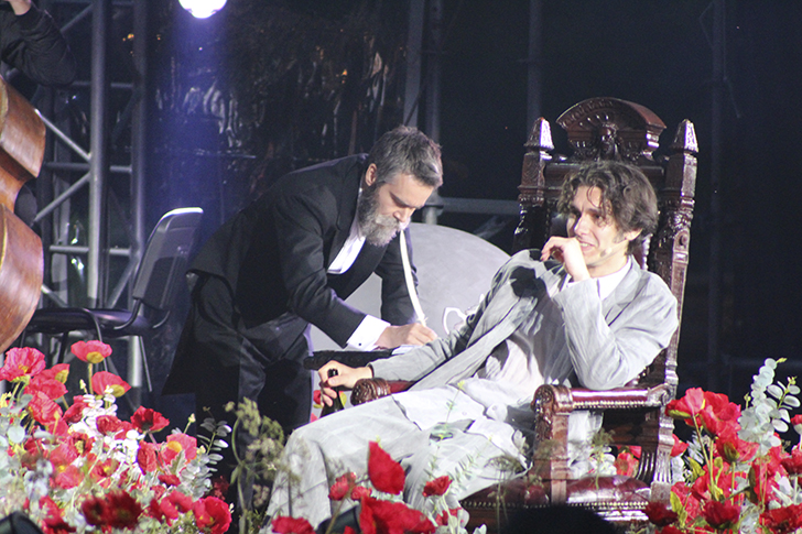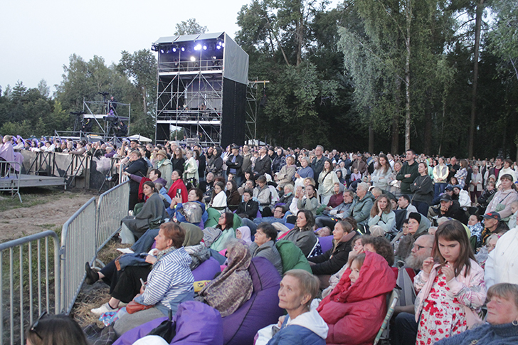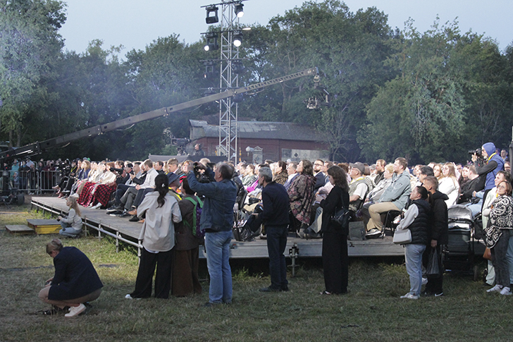 Часть зрителей, обладателей пригласительных билетов, расположилась на специально оборудованном подиуме. Однако большинству любителей классики пришлось устраиваться как придётся — на скошенном сене, пеньках и вдоль ограждения.