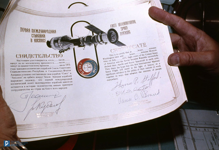 Еще три года потребовалось для подготовки кораблей, центров управления полетом и самих экипажей. После проверок и испытаний, предусмотренных программой подготовки, 15 июля 1975 года с космодрома Байконур стартовал корабль «Союз-19» с космонавтами Алексеем Леоновым и Валерием Кубасовым. Через семь с половиной часов с мыса Канаверал взлетел американский «Аполлон». В состав его экипажа вошли Томас Стаффорд, Дональд Слейтон и Вэнс Бранд. 17 июля корабли состыковались. Во время полета было проведено четыре перехода членов экипажей между кораблями. Космонавты знакомились с оборудованием космических союзников, общались, проводили эксперименты.