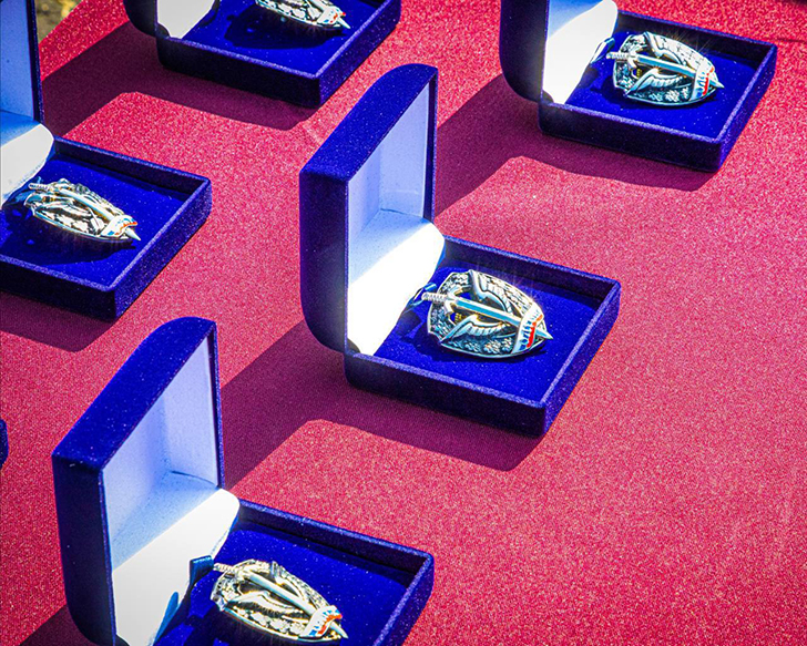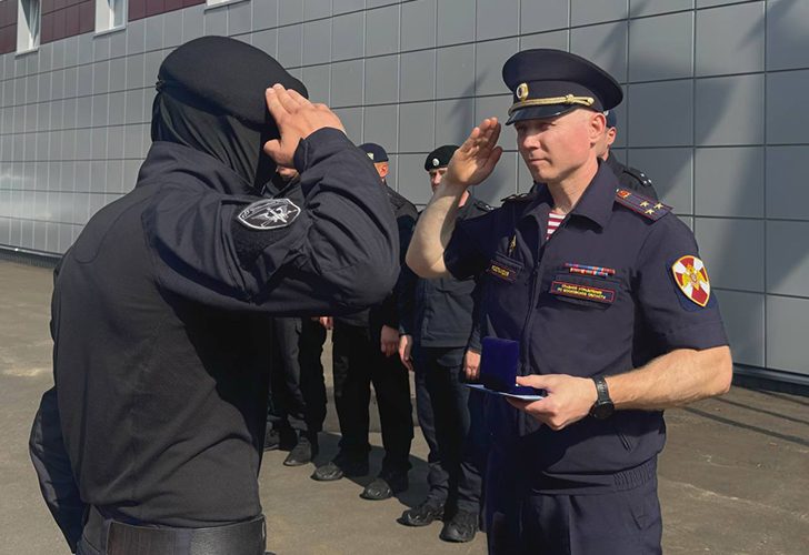 После завершения испытаний состоялась торжественная церемония награждения. Исполняющий обязанности начальника Главного управления Росгвардии по Московской области полковник полиции Сергей Новичков вручил 10 сотрудникам, успешно преодолевшим квалификационные испытания, геральдический знак отличия полицейского спецназа 2-й степени и удостоверения к нему.